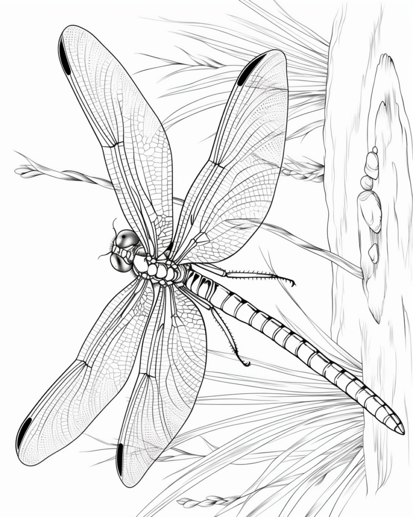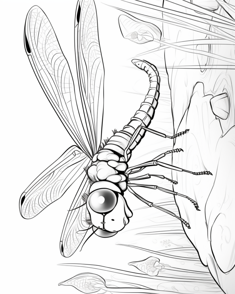 Free printable PDF dragonfly coloring pages for kids and adults. Easy and hard coloring sheets with the dragonfly life cycle, and different scenes.
